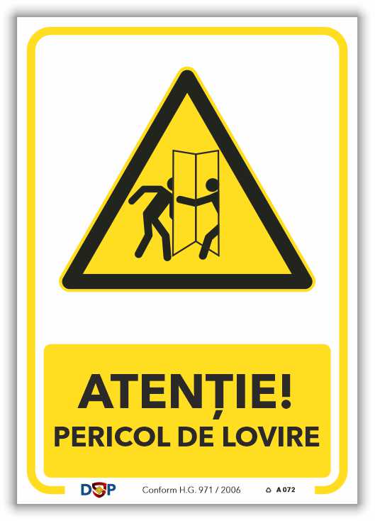PERICOL DE LOVIRE – indicator Avertizare pentru semnalizare la locul de muncă.