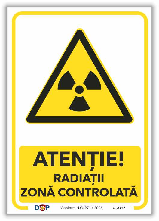 RADIAȚII MATERIALE ZONĂ CONTROLATĂ RADIOACTIVE – indicator Avertizare pentru semnalizare la locul de muncă.