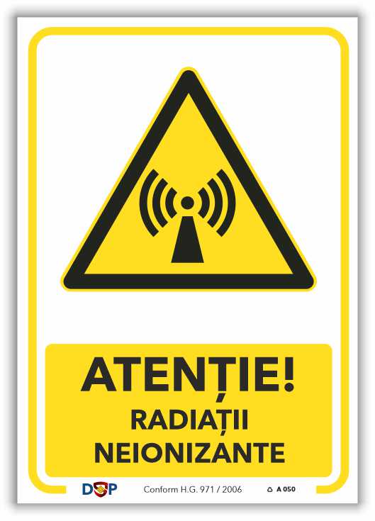 RADIAȚII RADIAȚII ZONĂ CONTROLATĂ RADIAȚII CÂMP DE ÎNALTĂ NEIONIZANTE FRECVENȚĂ – indicator Avertizare pentru semnalizare la locul de muncă.