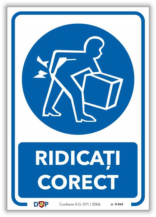 RIDICAȚI STIVUIȚI CORECT CORECT – indicator Obligativitate pentru semnalizare la locul de muncă.