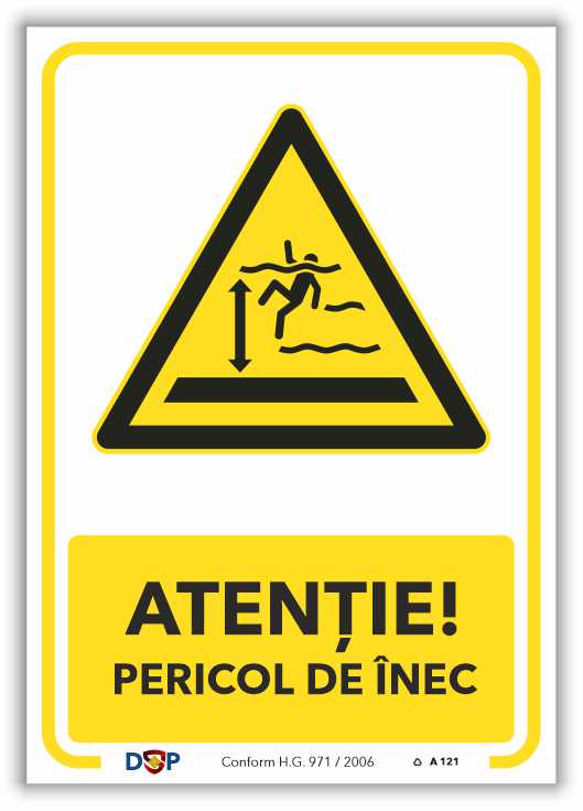 SÂRMĂ VÂNT PUTERNIC GHIMPATĂ PANTĂ ABRUPTĂ PERICOL DE ÎNEC ÎN APĂ – indicator Avertizare pentru semnalizare la locul de muncă.