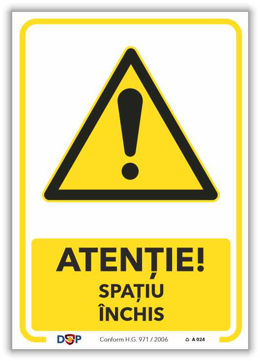 SPAȚIU ÎNCHIS – indicator Avertizare pentru semnalizare la locul de muncă.