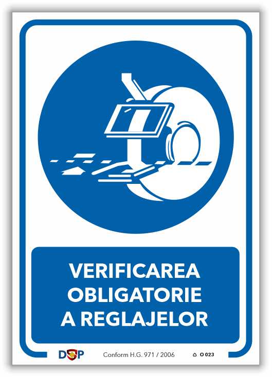 VERIFICAREA MONTAȚI OBLIGATORIE PROTECȚIILE REGLAJELOR DUPĂ INTERVENȚIE – indicator Obligativitate pentru semnalizare la locul de muncă.